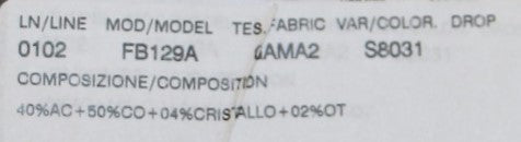 المواد: 50% قطن، 40% أسيتات، 4% كريستال، 2% معدن